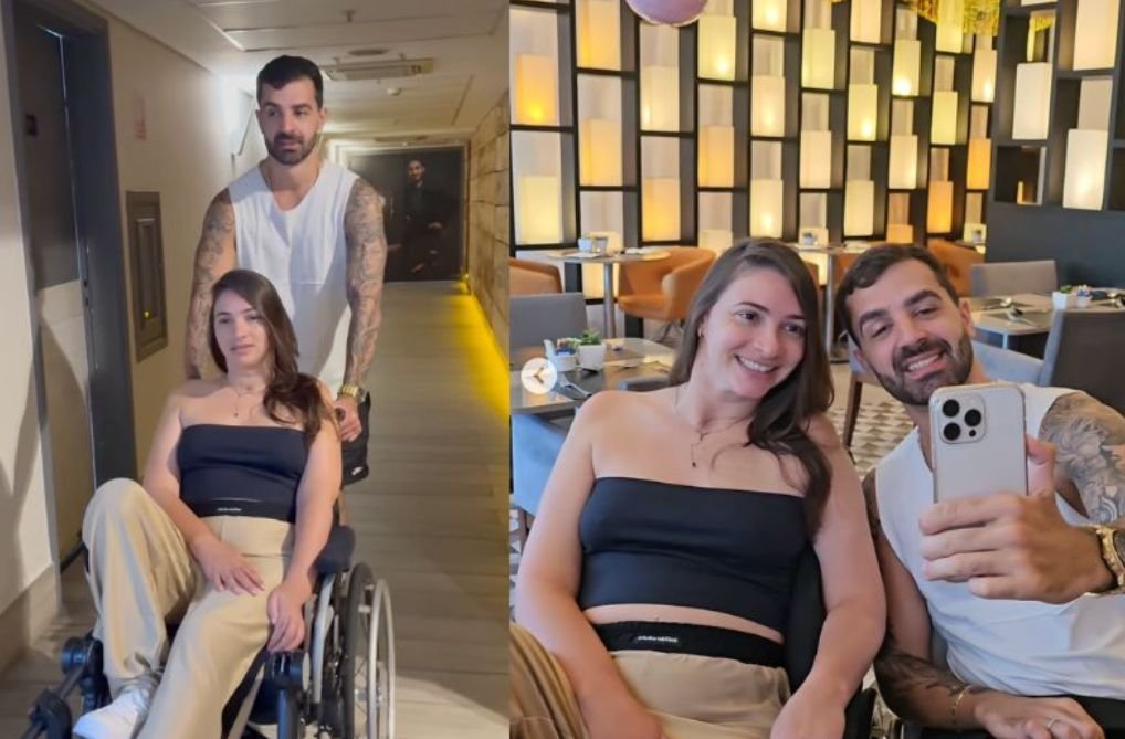 No vídeo do encontro, ele aparece empurrando a cadeira de rodas de Lais, que também ficou tetraplégica após acidente em 2014, quando treinava esqui nos Estados Unidos.