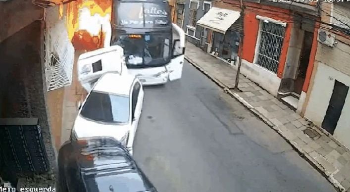 Imagens de câmeras de monitoramento mostram que o ônibus começou a se mover sem o motorista dentro, após ele acionar o freio de mão e descer do veículo. Em seguida, o transporte atingiu carros estacionados e se aproximou de um edifício, obrigando alguns adolescentes a pular sobre veículos para conseguir escapar.