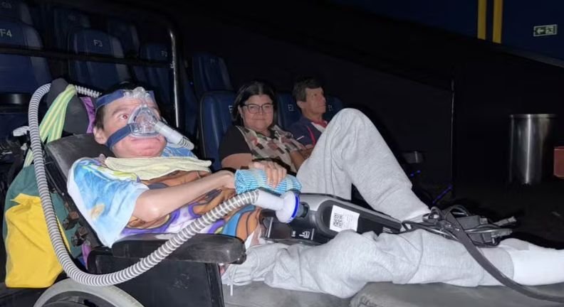 Paciente com distrofia muscular de Duchenne retorna ao cinema após 7 anos em Goiânia