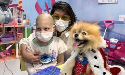 Cantora promove visita com pet ao Hospital Mário Covas e nomeia cãozinho como Embaixador da ONG Alquimia Pet.