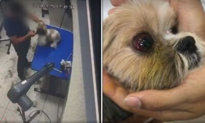 Funcionário temporário filmado espancando a cadela durante tosa; ela está estável após sofrer lesão no olho, mas manteve a visão