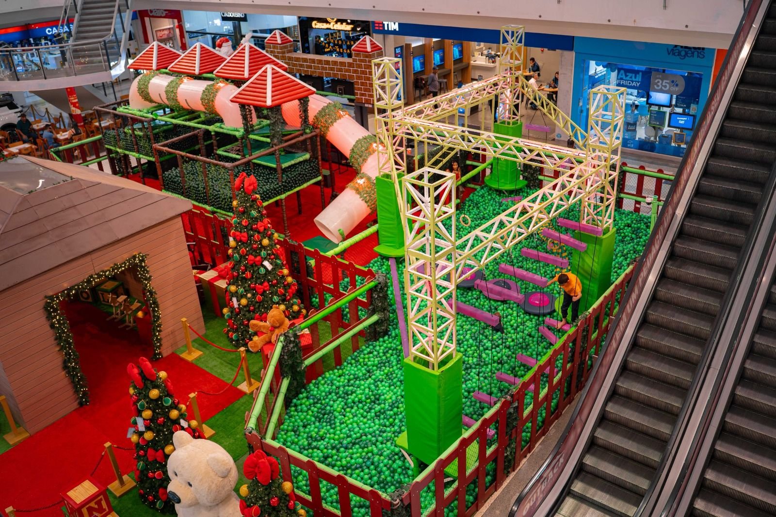 Espaço lúdico localizado na Praça de Eventos conta com escorregadores iluminados, trampolins e piscina gigante de bolinhas, prometendo diversão, magia e memórias afetivas para as crianças