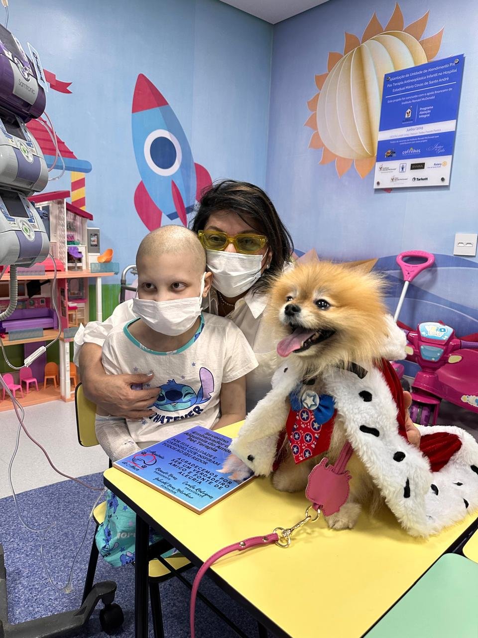 Cantora promove visita com pet ao Hospital Mário Covas e nomeia cãozinho como Embaixador da ONG Alquimia Pet.