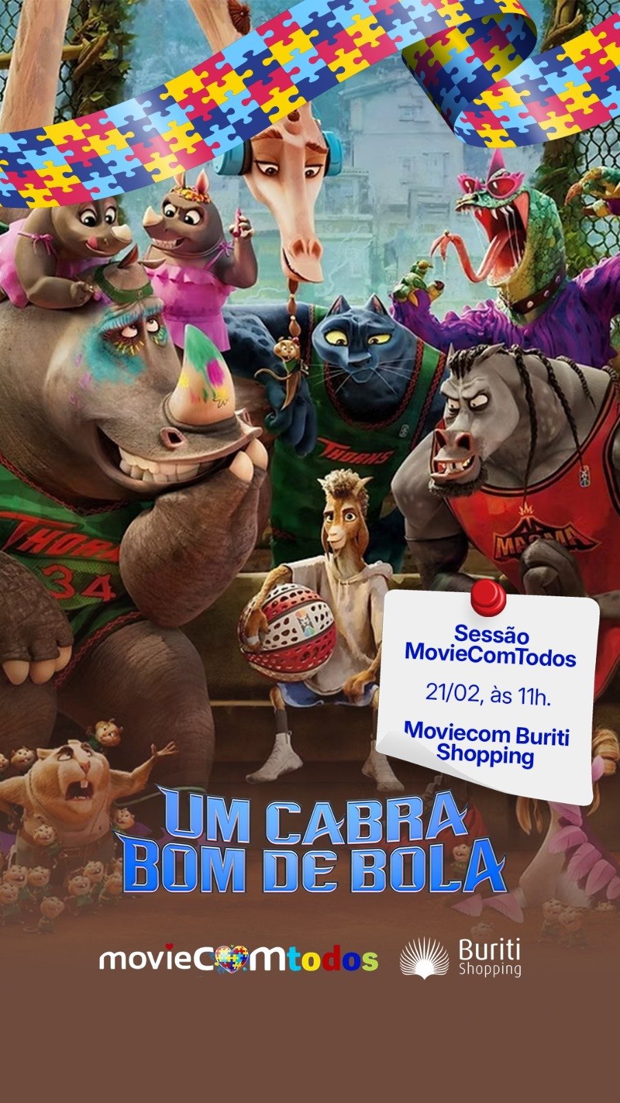 Para muitas famílias de crianças com Transtorno do Espectro Autista (TEA), uma ida ao cinema pode representar mais desafio do que lazer. Pensando nisso, o Buriti Shopping realiza mais uma edição do MovieComTodos, projeto que adapta a experiência cinematográfica para torná-la mais acolhedora, confortável e acessível. Neste sábado, 21 de fevereiro, às 11h, a Moviecom exibe a animação “Um Cabra Bom de Bola” em sessão inclusiva especialmente preparada para crianças com TEA.