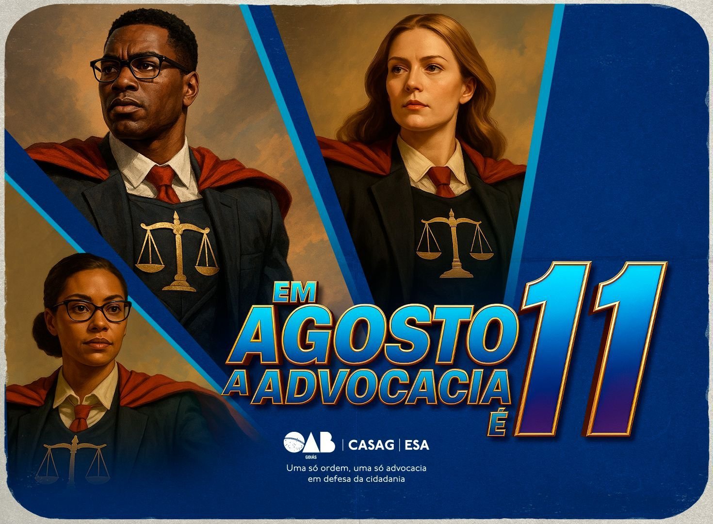A Escola Superior de Advocacia de Goiás (ESA-GO) lança mais uma edição da campanha “Agosto é 11”, que promete revolucionar a qualificação profissional de advogados, estagiários e estudantes de Direito em Goiás. E tem mais: a iniciativa se destaca pela amplitude educacional e pelo uso de Inteligência Artificial (IA) na comunicação audiovisual.