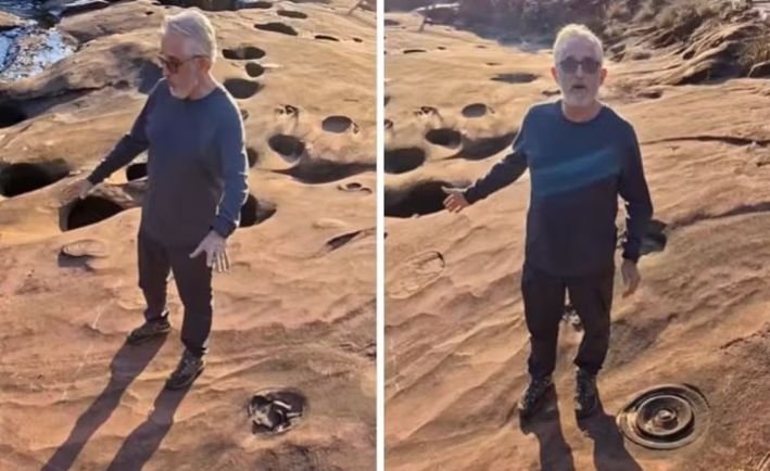 No material, Miguel caminha entre marcas no chão avermelhado e pedras, apontando possíveis evidências de pousos de discos voadores. Ele ressaltou que a cidade é conhecida por sua reputação mística e tem grande relevância nos estudos de fenômenos ufológicos no Brasil.