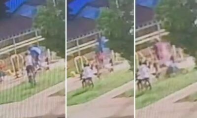Corporação encontrou a vítima já inconsciente; queda ocorreu após tentativa de salto para trás em banco da praça.
