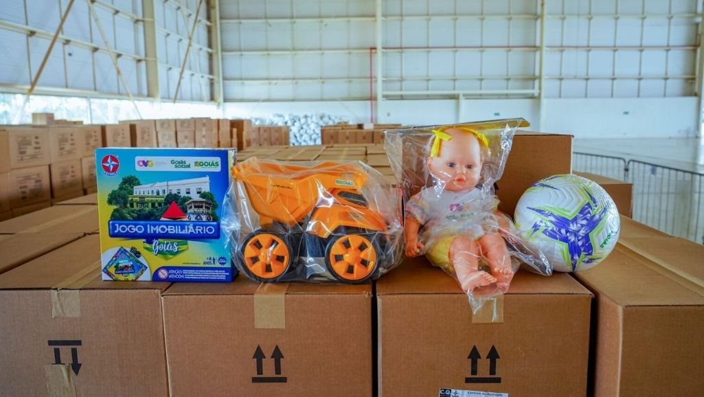 Entre os brinquedos distribuídos estão bonecas, carrinhos que se transformam em patrola, bolas de futebol e vôlei, kits de panelinha e o novo jogo imobiliário com pontos turísticos de Goiás.