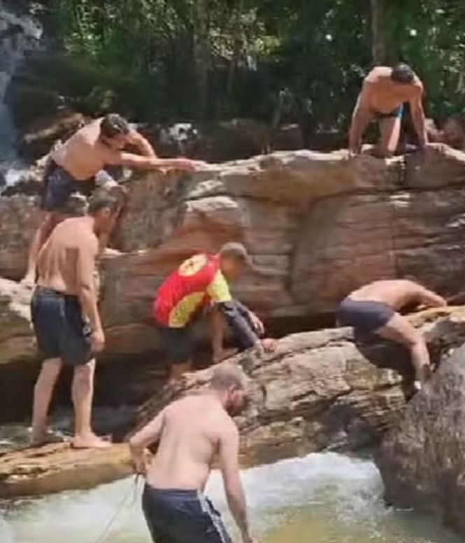 Vídeos que circulam mostram o atendimento realizado por guarda-vidas. Segundo o advogado que representa a empresa, o profissional uniformizado pertence à cachoeira Meia Lua, localizada nas proximidades, e foi chamado para reforçar o socorro.