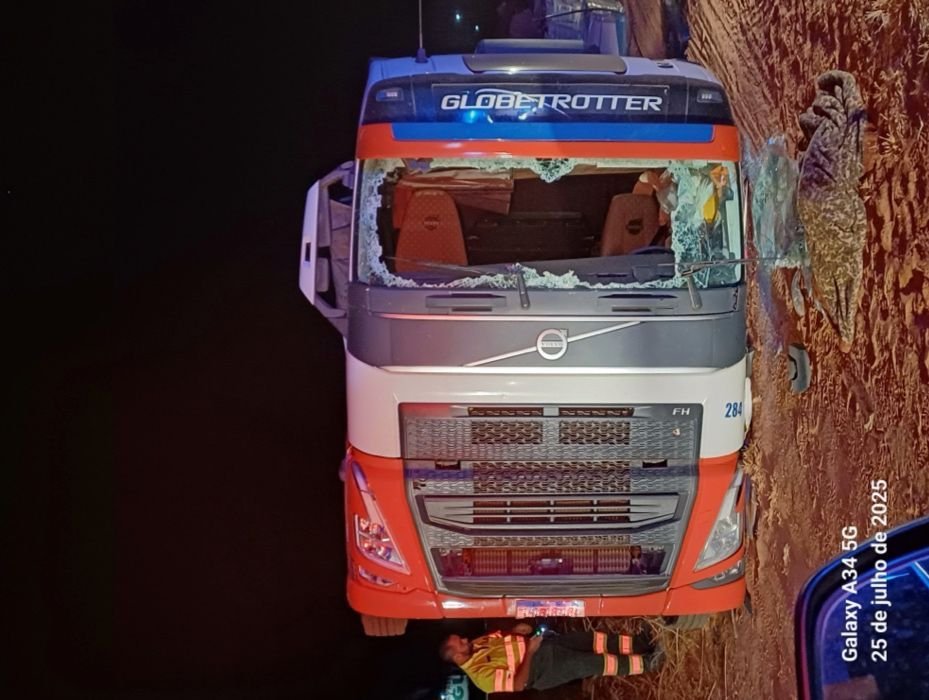 Motorista sob efeito de anfetamina foge da PRF e tomba caminhão na BR-153