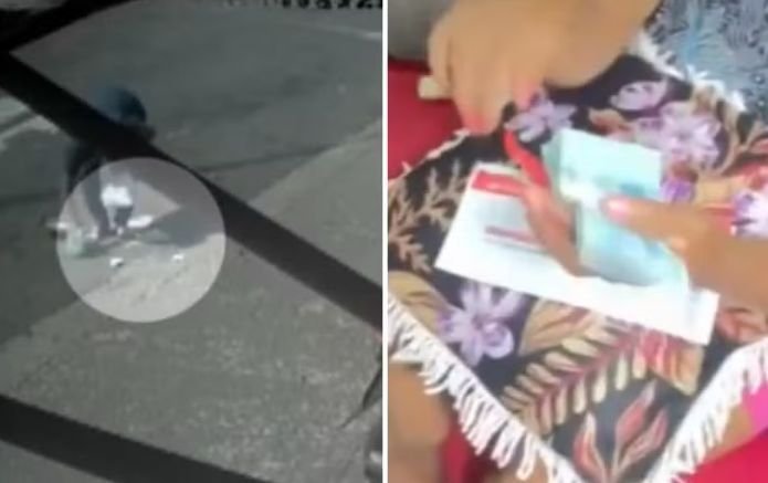 O episódio ocorreu na quinta-feira (6). Imagens de câmeras de segurança mostraram o momento em que Marineide, ao abrir a porta de um carro estacionado em frente a um supermercado, deixou o envelope cair sem perceber.
