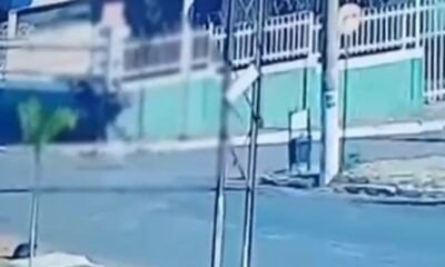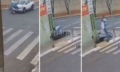 Acidente no Centro da cidade foi registrado por câmera; mãe está internada em estado grave