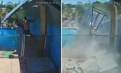 Estrutura desabou enquanto eles conferiam telhado; imagens de câmera mostram o momento do acidente.