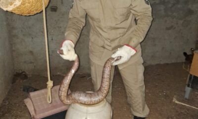 Animal foi encontrado por moradores e retirado com técnicas seguras pela equipe da 23ª CIBM.